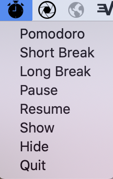 - Start Pomodoro timer (25 mins) from icon in menubar